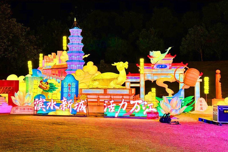本次花灯会的最大亮点,是精心设计的20组大型主题花灯。这些花灯规模宏大、工艺精湛,从公园入口蜿蜒至核心区域,形成一条长达数百米的“光影长廊”。每一组灯都独具匠心,讲述着属于东莞的故事。“东莞地标·花开腾飞” 以城市天际线为蓝本,绽放的巨型花朵象征着东莞的繁荣与希望;“滨水新城·活力万江” 则通过动态灯光与水景结合,展现万江作为水乡新城的生态之美与现代活力。为迎接蛇年,“灵蛇迎春” 与“福蛇献瑞”灯组格外引人注目——卡通化的灵蛇盘绕草地,眼神灵动,身姿矫健,或昂首吐信,或盘踞祈福,将传统生肖文化演绎得既庄重又充满童趣,成为游客争相合影的“顶流”打卡点。