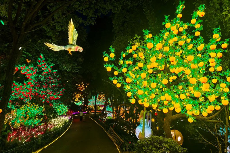 当晚,记者在“南宁夜花园”现场看到,前来打卡的市民游客络绎不绝,不少人举家出行,在光影变幻中感受大自然的独特魅力。“南宁夜花园”占地面积约623亩,整体游览线路长4公里,通过文化赋能、科技创新、传统艺术技艺与现代技术相融合,创新打造“魔幻森林”“哪吒火舞”“繁花世界”“丰收的稻田”“恐龙再现”“奇花异卉”六大原创主题场景。