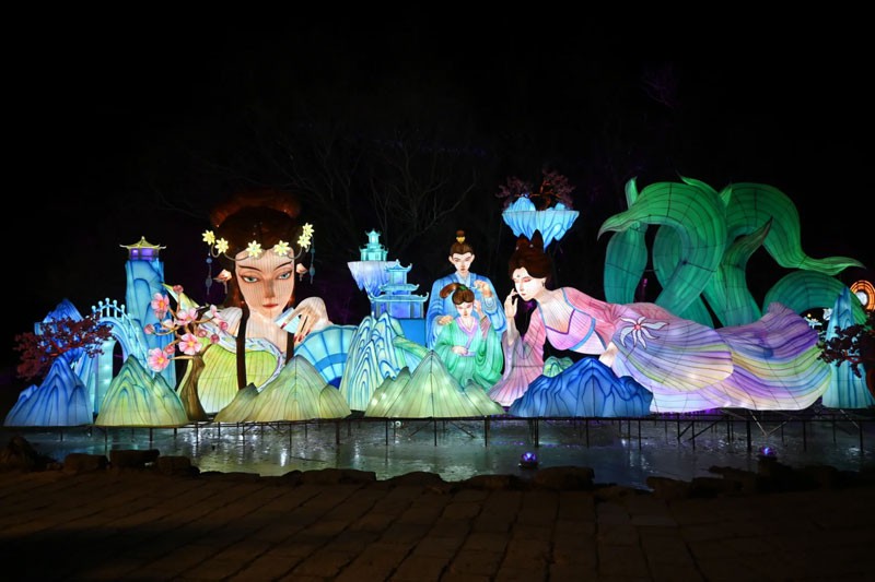 据聊斋城景区负责人柳佳介绍,此次花灯节主题为“春灯映聊斋,瑞福伴新岁”,将联合有“天下第一灯”美称的四川自贡非遗制灯团队呈现。自贡灯会,以气势壮观、规模宏大著称,以构思巧妙、制作精巧取胜,以灯景交融、层次迷离称奇,2008年被评为国家非物质文化遗产。