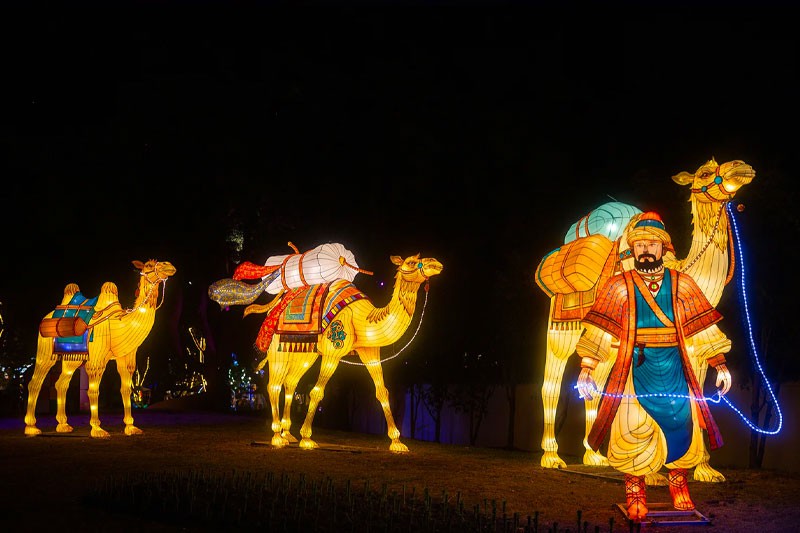 看点一:蒙古叙事,江南呈现:沉浸式文化奇旅。本届灯会以深厚在地文化为基石,开创性地将苍茫辽阔的草原魂魄与诗情画意的江南基因完美交融。荟聚15组极具异域风情、规模宏大的主题灯组,交织奇幻瑰丽的光影世界,为您全景式呈现内蒙古高原的奔放豪情与壮阔气魄,开启一场身临其境的文化奇旅。
